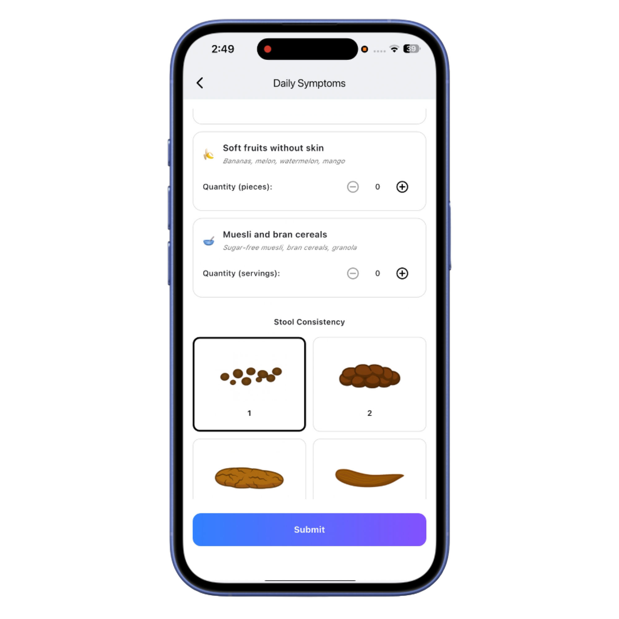 We combine validated scores with daily data to help you see how lifestyle, food and routines affect your bowel symptoms. iLARS summarizes trends so you and your doctor can act earlier.